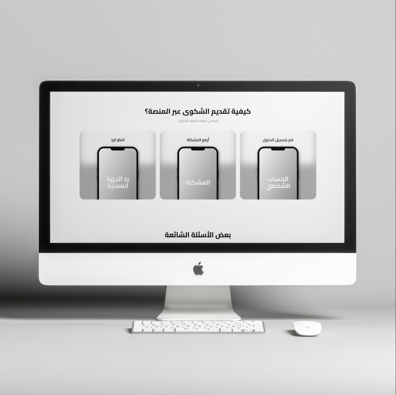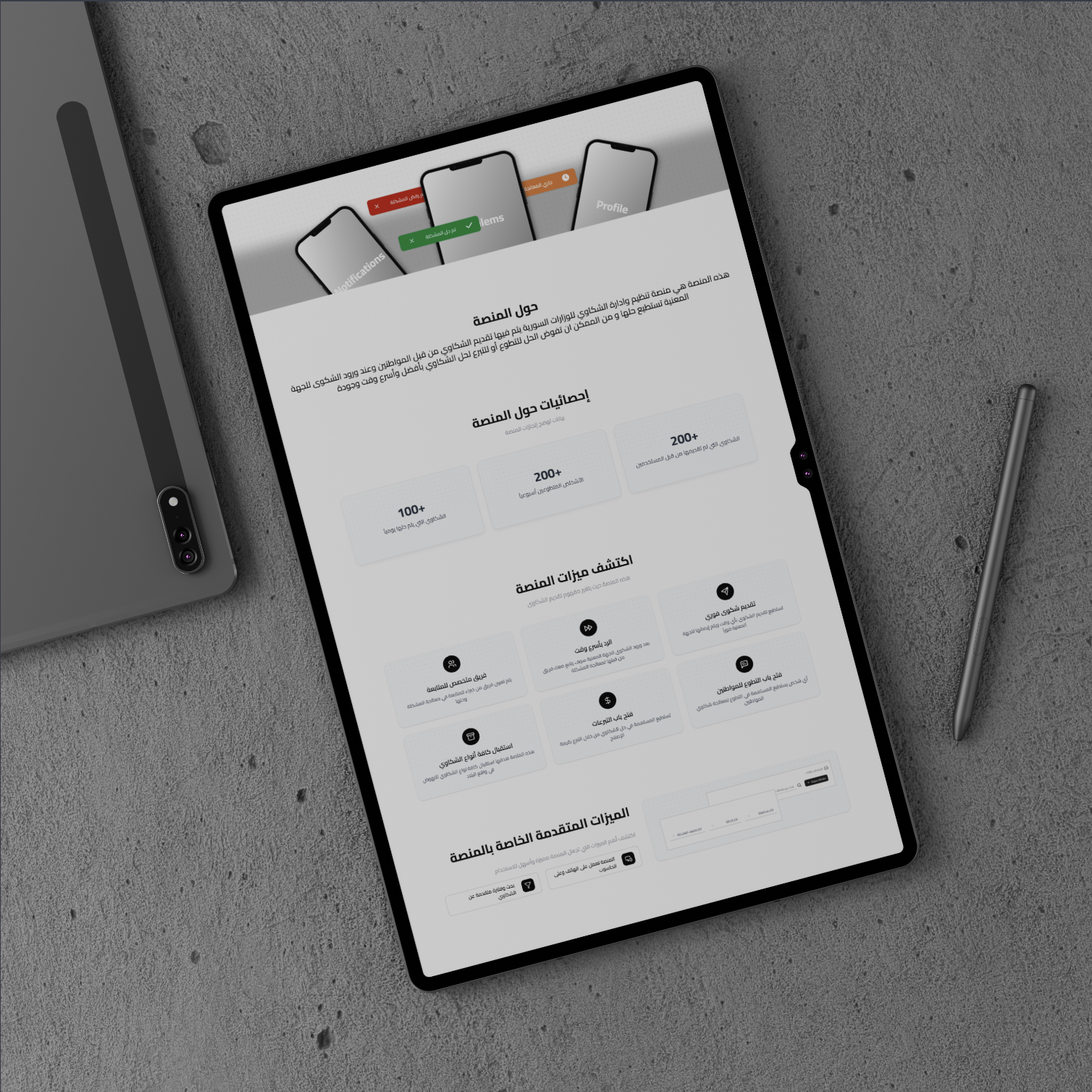 المنصة تنقسم بشكل أساسي إلى ثلاثة أقسام، قسم المستخدم العادي وهو المواطن وقسم الجهة المعنية، وقسم الأدمن، مع العلم أنه في البداية يوجد Landing Page لتشرح أكثر عن المنصة وكيفية استخدام التطبيق وبعض الأسئلة الشائعة.