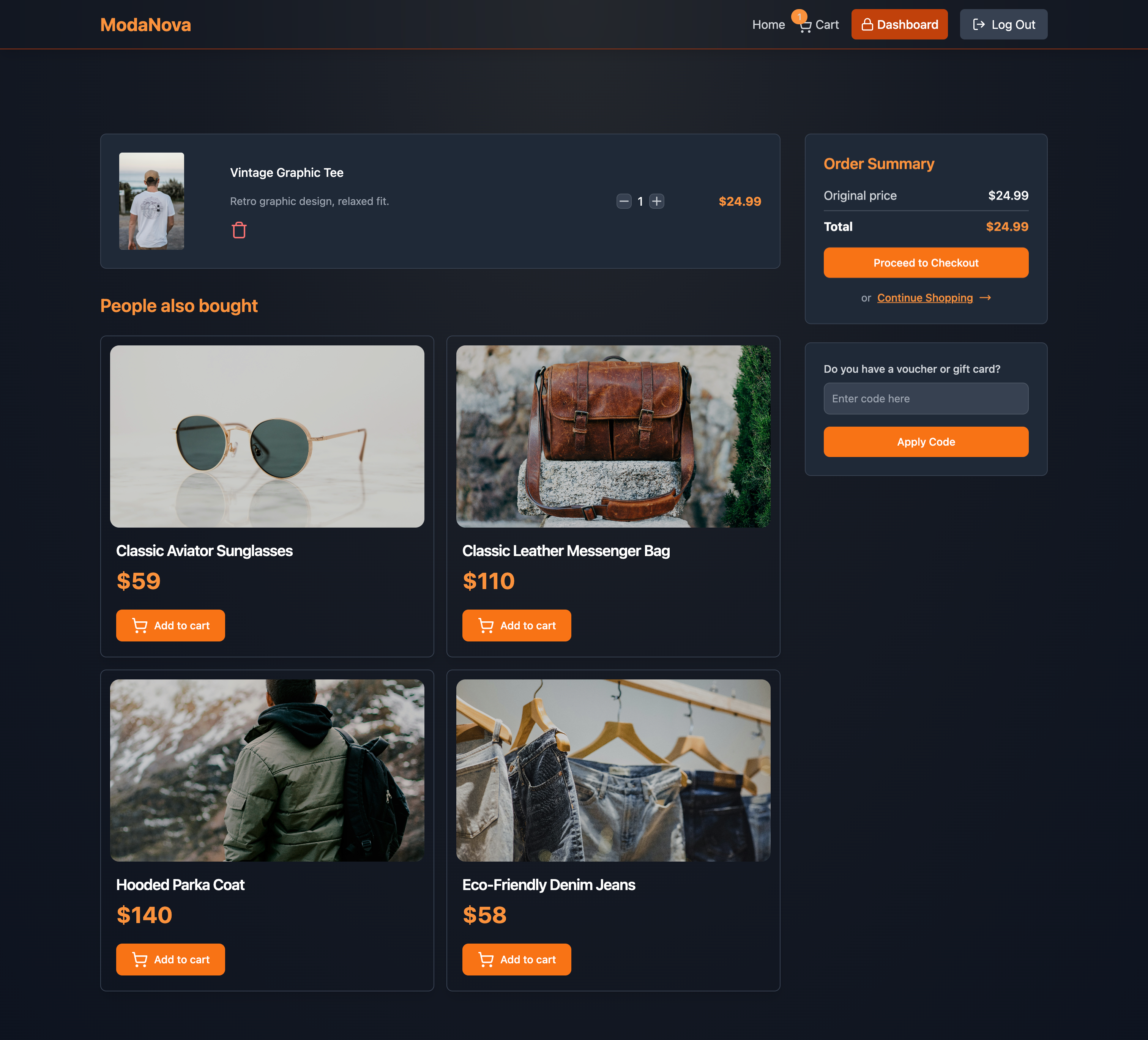 مشروع MODA NOVA هو متجر إلكتروني E-Commerce تم بناءه من الصفر وهو قوي تقنياً حيث انه لا يعتمد على قوالب جاهزة بل تم بناءه خطوة بخطوة باستخدام التقنيات البرمجية الحديثة.